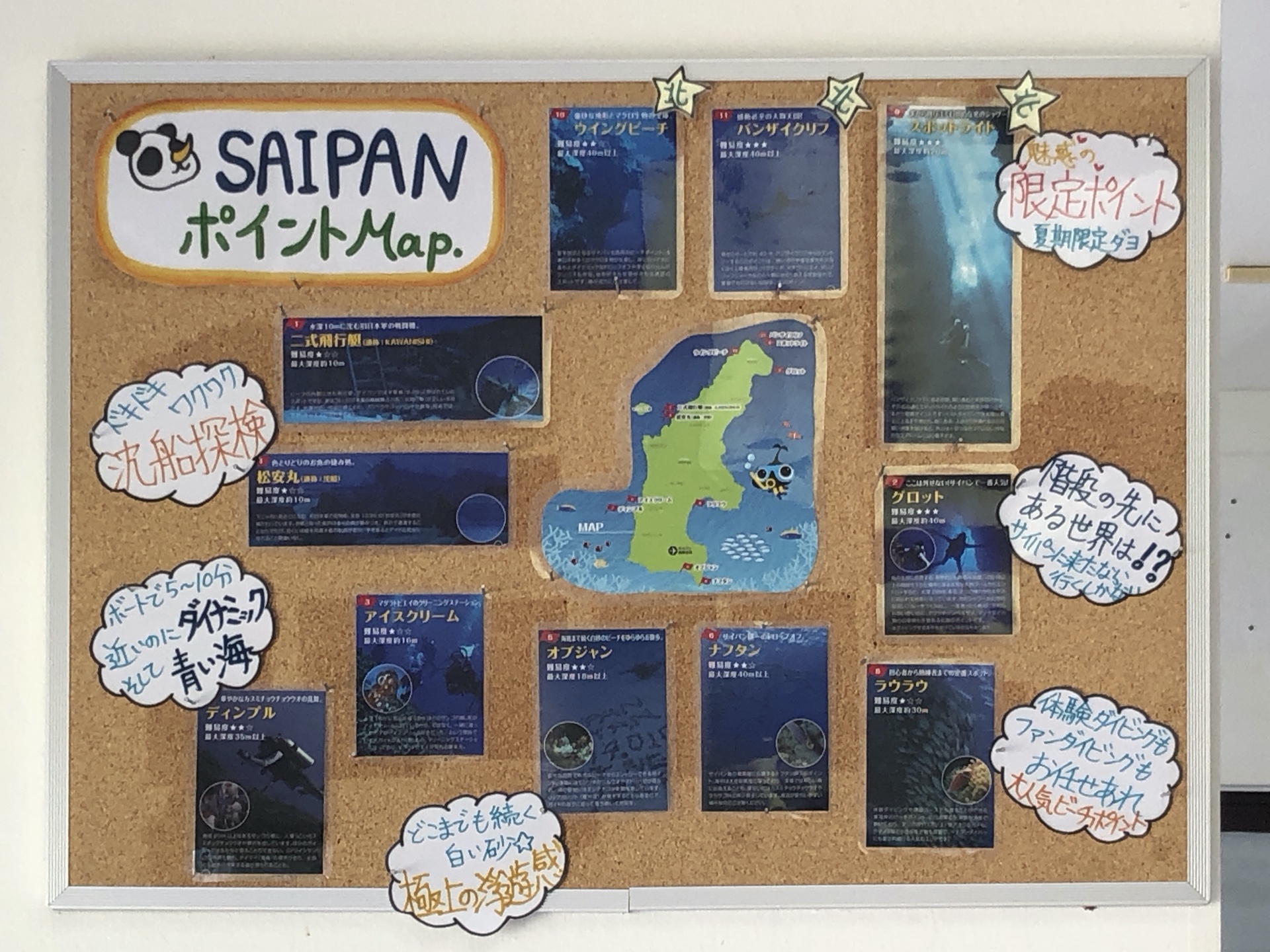ショップにあったサイパンのポイントマップ。グロット行きたかったなぁ〜。