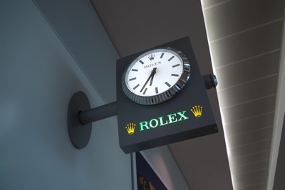 空港ターミナル降りたらその豪華さにビックリ!案内用の時計もROLEX・・・。