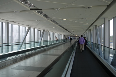 駅で降りてホテルの方まで遊歩道がずっと繋がっている。外は暑いけど遊歩道は冷房が効いてて快適。