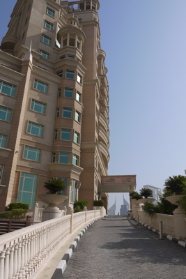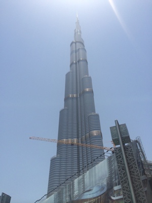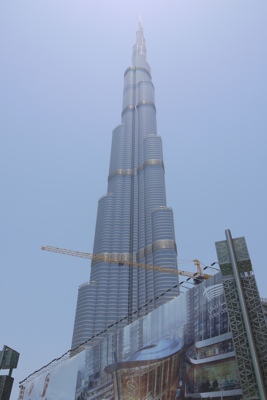 遊歩道をホテル近くの出口から外に出ると目の前にあの「ブルジュハリファ」がそびえ立っている。随分見上げないと一番上まで見えない。これが世界一の高さを誇るビルなのか。すごいな。