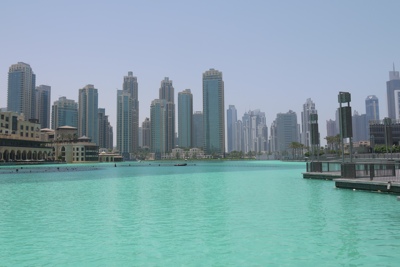 AT THE TOP(展望台)に登る前に、夜に見ようと思っているドバイファウンテンが行われるプールに出てみた。いや〜、すごく広いプールだな。噴水ショーが楽しみだ。