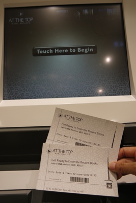 展望台のチケットは事前に日本からこのページで予約しておいた。事前に予約しておくと125ディルハムだけど、当日券買うと400ディルハム。当日券はなんと1万円以上もする。世界一といっても当日券は高過ぎだよ。ちなみに当日券はすぐに売り切れになっていた。