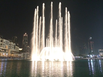 いよいよ噴水ショーのドバイファウンテンを見る。以前「イッテQ!」でこの存在を知ってからすごく見たかったんだよね。5分ほどのショーだったけどすごく良かっ