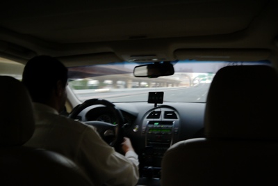 重いバックパックのリュックを積んでタクシーに乗り込むと運転手のおじさんがめちゃくちゃとばす・・・。