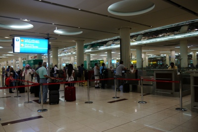 ターミナルのいたるところに書かれているアラビア語や、砂漠をイメージした絵、ターバンを巻いた人々など・・・中東に来たんだ!と感じさせられる。