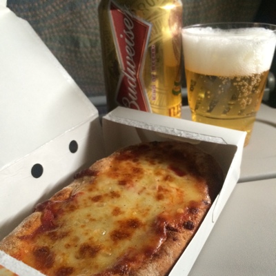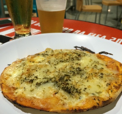 試合は終わったけれどお腹が空いているのでビールとピザを頼む。