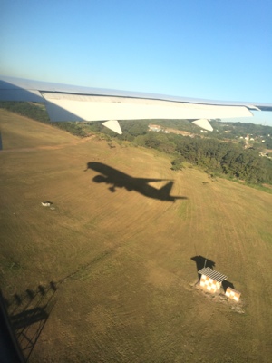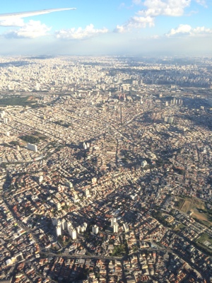大西洋を超え南米大陸の上空に来た。とうとう日本の反対に来たんだな。広い森を超えるとバカでかい街に差し掛かる。トランジットのためにサンパウロに降りるのだ。サンパウロは人口1100万人の南半球最大の街だそうだ。今回の旅ではトランジットだけだが次にブラジルに来た時にはゆっくりサンパウロを巡ってみたい。