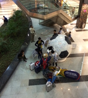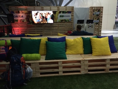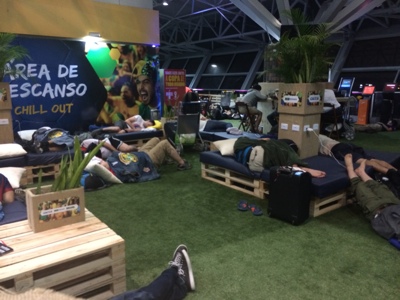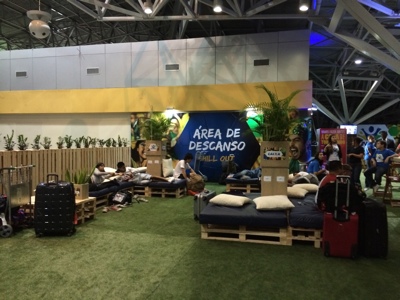 重いバックパックを担ぎながらうろうろしていると3階にFUNZONEという休憩所を発見。ここで寝ることにしよう。ワールドカップのファンのために CAIXAがやってるみたい。ブラジルの銀行だったかな。すごく助かります。