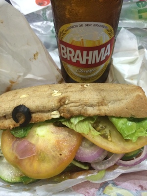 日本のサブウェイは行った事あるけどココは英語が全然通じないし、指であれとこれと・・・と注文したら違うのが出てきて「ノーノーノー」と断ってなんとか注文したサンドイッチが出てきた。隣の店でブラジルのビールを買ってやっと夕飯の時間。 ポルトガル語が全く分からないし英語もあんまり通じないし、ブラジルでボク達は大丈夫だろうか・・・?