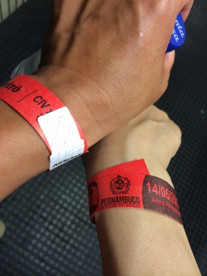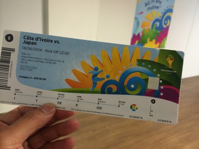 入り口が開いて駐車場奥にあるというFIFAのチケット交換所を探した。分からなくて店の人に聞きながらやっと辿り着いた、試合当日だしすごく並んでたらどうしよう?と思ったけれどガラガラで心配は無用に終わった。FIFAから送られたチケット購入証明書とパスポートを見せたら、グループリーグ3試合分のチケットを受け取れる事ができた。この貴重なチケットを無くさないようにしないとな。ブラジルに来る前に一番不安だった試合当日のチケット交換がすんなり終わって一安心した。