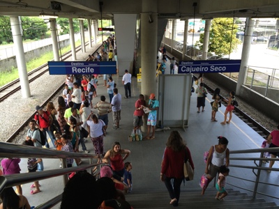 昨日は空港に泊まったしショッピングセンターはオープン直後だったので、列車で今回初めて大勢のブラジル人の中にいる。人が多いなぁ。レシフェ駅を降りてオリンダ行きのバスを探す。