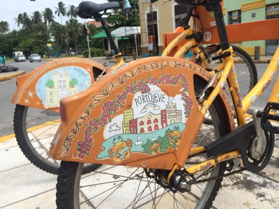 オリンダ地区は世界遺産であり観光地ということでいろいろ見て回りやすいようにレンタサイクルがあった。車体の絵も可愛くて景観にもマッチしておりすごくいい。日本の観光地のレンタサイクルももっと可愛いデザインとかにすればいいのに。