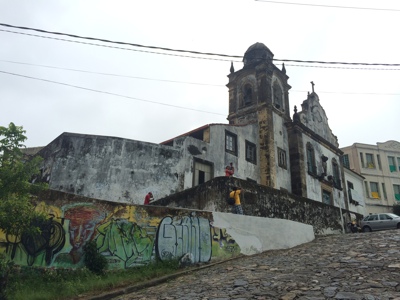 カルモ広場近くの丘の上にあるカルモ教会に向かった。途中で広場の向こうから英語で「ガイドするよ〜」と言われたがノンビリ見て回りたいので自分たちだけで行く事にした。ブラジルはポルトガルの植民地だったので教会がたくさんある。中でもカルモ教会は古い教会らしく年代を感じさせられる。