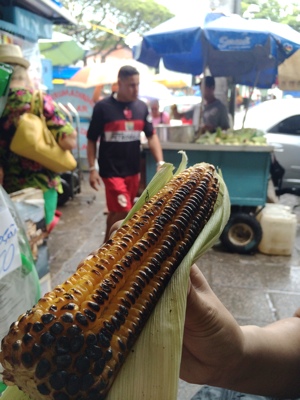 市場から駅に歩いている途中に屋台でトウモロコシを食べてみた。ボクはトウモロコシが好きで日本でもよく食べる。でもココの屋台のトウモロコシは焼いただけで実も固く味がない。まったく美味しくなかった。ブラジルのトウモロコシ屋に日本の醤油タレを教えてあげたいくらいだよ。