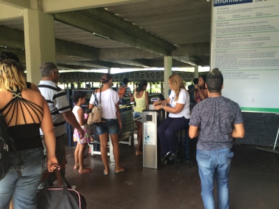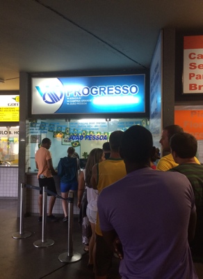 メトロで「Rodoviaria」駅に行く途中何度か迷ってしまった。いつの間にか行き過ぎてて戻ったらまた戻りすぎて・・・。駅名見ながら気をつけていたけどいつの間にか別の駅に…。各停とか急行とかあったのかな?なんとか「Rodoviaria」駅で降りる事ができ併設されている長距離バスターミナルに向かった。日本で予約しておいた「PROGRESSO」のチケット売り場に並び、予約表を見せてチケットと交換するのだが英語が全く通じない。決済はクレジットカードでしておいたのに別途1人4.5レアルとられる。何のお金かわからないので英語で聞いたけど全く通じなかった。