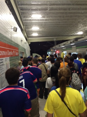 ラテンのお姉さんは、連れて行ってくれた別のバス停でも他のお客さんに聞いてくれた。どうやらココ らしい。突然「英語喋れますか?」と若い男の人が英語で話しかけてきた。「a little」と言うと「10分前に空港行きのバスが出ましたよ。次の便は ストの影響でしばらく待たないといけないかも・・・」と。ブラジルはサンパウロなど他の都市でもワールドカップ開催に反対してストやデモが頻発してる。ブラジルでの生活の現状を考えると分からなくもないが、始まっちゃっているんだからそこはサッカー大国としてちゃんとやって欲しい。