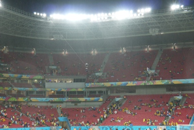 飛行機は飛び立ち、いよいよアマゾンの密林へと向かう。15:30にクイアバに着くのだが他の都市と比べて1時間の時差がある。ワールドカップの試合とは関係ないのだが、はるばる地球の裏側まで来るのだから、このように試合と試合の合間にパンタナールやイグアス、レイソンズなど世界遺産を見に行ってる人たちも多いようだ。