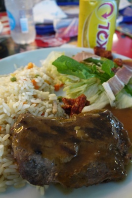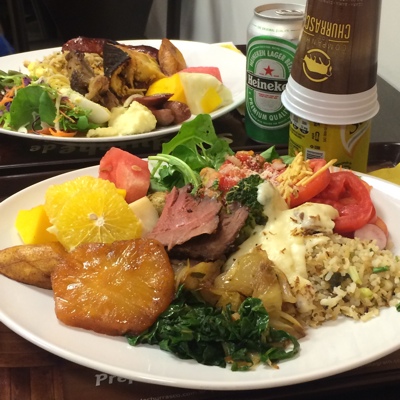 食べたいだけ皿にのせて重さを量って料金を支払うシステム。ブラジルに来て初めてのブラジルっぽい料理を食べる。肉や豆料理は美味しかったがパスタはイマイチ・・・。当然ビールを呑む。