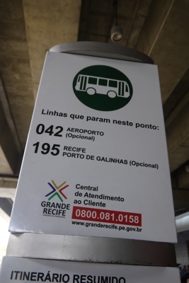空港のバス乗り場から113番の巡回バスに乗る。8レアルだ。隣に座っていた西洋人の家族が巡回バスのルートマップを持っていたので「写真を撮らせてもらえませんか?」と聞いたら「あげるよ」と言ってルートマップをくれた。