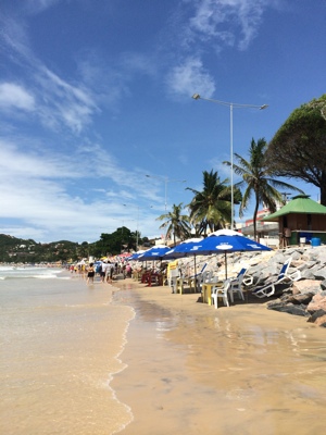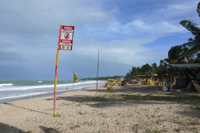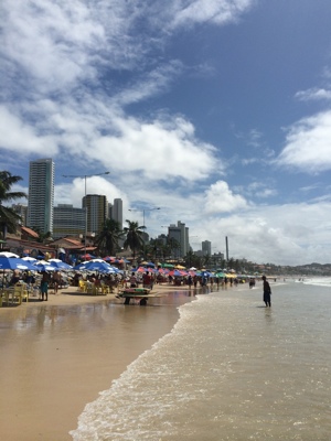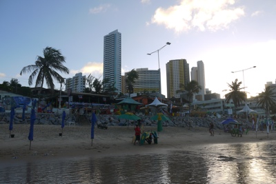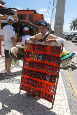 ビーチへの坂を下ると海が見えて来た。レシフェから行ったマラカイペのビーチと全然違い観光客がたくさんいてお店もたくさんあった。通りでサングラスを売ってる子供がいた。カノジョがサングラスを無くしてしまっていたので買うことにした。値段を聞いてみると
