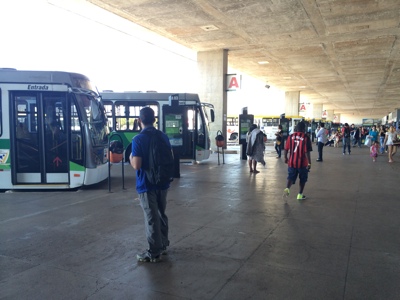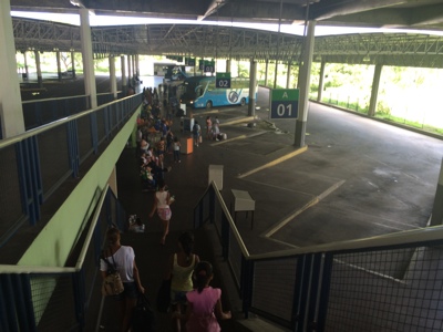 随分待っても来ないが同じお姉さんに聞きづらいので、こっそり別の ラテン系のお姉さんに聞いてみるとバス停側の売店の人に聞いてくれて「 あっちだって、連れて行ってあげる」と言ってくれた。ポルトガル語だから分からないけれど、たぶんそんな感じの事を言ってくれて連れて行ってくれた。英語は喋れないみたいでお互い身振り手振りだけどブラジルの人って優しいな・・・。ちなみに日本みたいにちゃんとどのバス停にどこそこ行きのバスが停まるというものではなく、ひっきりなしに来るバスが適当に停まっている・・・ようにボクたちには見えた。もうちょっとバス乗り場を効率良くして欲しいよ・・・。