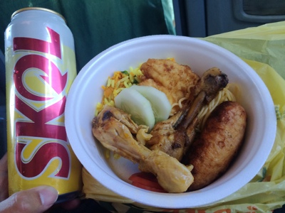 スタジアムではあまり食べられないだろうから長距離バスターミナルで軽く食べておく事にした。よくわからないパスタが入ったスープとビールを呑みながらウルグアイvsコスタリカ戦を少し見た。