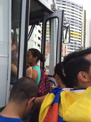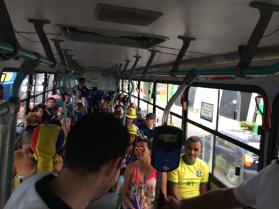 そのうち10代の若い女の子2人組が英語で話しかけてきた 。「ナタールのどこが良かった?好きなサッカー選手は? 結婚してるの?ネイマールは好きじゃない…ハハハ…」 というような感じで30分くらいずっと喋っていた(笑)。日本の女子高生のように、ず〜と喋っていたけど彼女達が乗るバスが来たら「バイバ〜イ」って帰っていった。ラテンのお姉さんは英語を喋れないからこの子達の会話に入って来れ ずに寂しそうだったな。