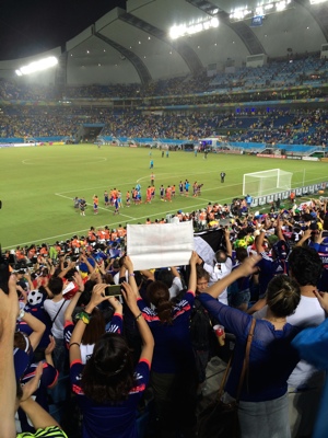 聞くところによると財政破綻をしたギリシャは、代表チームだというのに一般客も泊まるホテルに宿泊してるのだという。一方我らが日本代表は良いホテルに泊まりスター扱い。日本にJリーグが発足し、サッカー人気も高まり、W杯にも何度か出場し、アジアではチャンピオンで、国民からもチヤホヤされ・・・期待されて乗り込んで来たブラジルで勝たなくてはいけなかった2戦を勝てなかった。こんなものなのか・・・(涙)