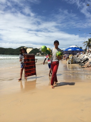 帰り支度をしてフロントに荷物を預け、ポンタネグラのビーチへ再び繰り出した。昨日の悪夢は忘れビーチで太陽を浴びる事にする。ビーチパラソルを20レアルで借りてくつろいでいるといろいろな物売りがやってくる。一昨日サングラスを売っていた少年が今度はビーチ用のサッカーボールを売っていた。その少年もボクたちの事を覚えていたみたいで、ニコッとしていた。