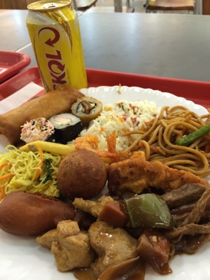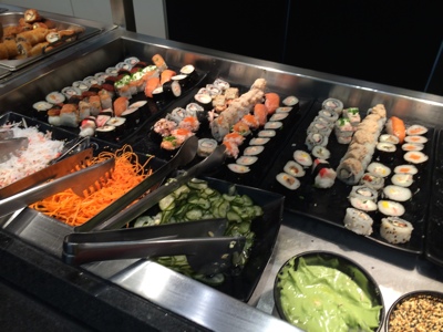 結局食事は中華っぽいのにすることにした。 寿司もあったけれど中にクリームとか入っていて、こんなの寿司じゃないよ・・・ と思いながら海苔巻きなどは少し食べてみようっと。