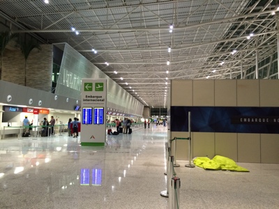 今回なぜ空港で2泊するかというと、レシフェに到着したのが夜の10時過ぎだし、明日の日本の試合は始まるのが夜の10時で終わるのが夜中なのでホテル代ももったいない。また、初めてのブラジルでの夜中の移動は危険なので最初の2泊だけはなんとか空港で過ごすことにしたのだ。まさかブラジルの街中で野宿という訳にはいかないしね。