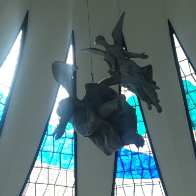 一通り見て回った後はメトロポリタン・カテドラルに行ってみた。ここもオスカー・ニーマイヤーのデザインだ。入り口付近には使徒達がいる。内部はステンドグラスに光が差し込みとても明るい。天井からは天使が吊るされておりとても幻想的だった。