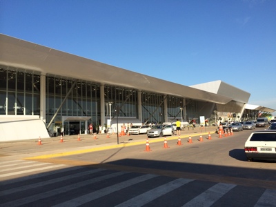 重いバックパックのリュックを積んでタクシーに乗り込むと運転手のおじさんがめちゃくちゃとばす・・・。 100キロ以上でびゅんびゅんと夜道を突っ走る・・・。随分走ったところで薄暗い山の中に新しいナタール空港が現れてきた。 突貫工事で新空港を作ったらしく、開港もワールドカップ直前のギリギリだったみたい。ヒビ割れた壁や中身がむき出しになっているコンクリートなど、相当の手抜き工事だな。外見は すごく立派そうな空港だけれど中は全然ダメダメじゃん・・・。