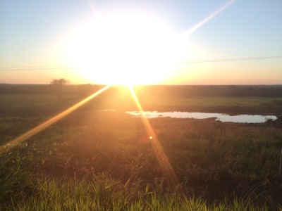 クイアバの街を抜けるとずっと草原や湿原の間を車が走る。途中珍しそうな鳥を見かけた。夕日もとても綺麗だ。カメラを構えて窓の外に向けると、英語の通じないドライバーさんが親切にスピードを落としてくれた。ブラジルの